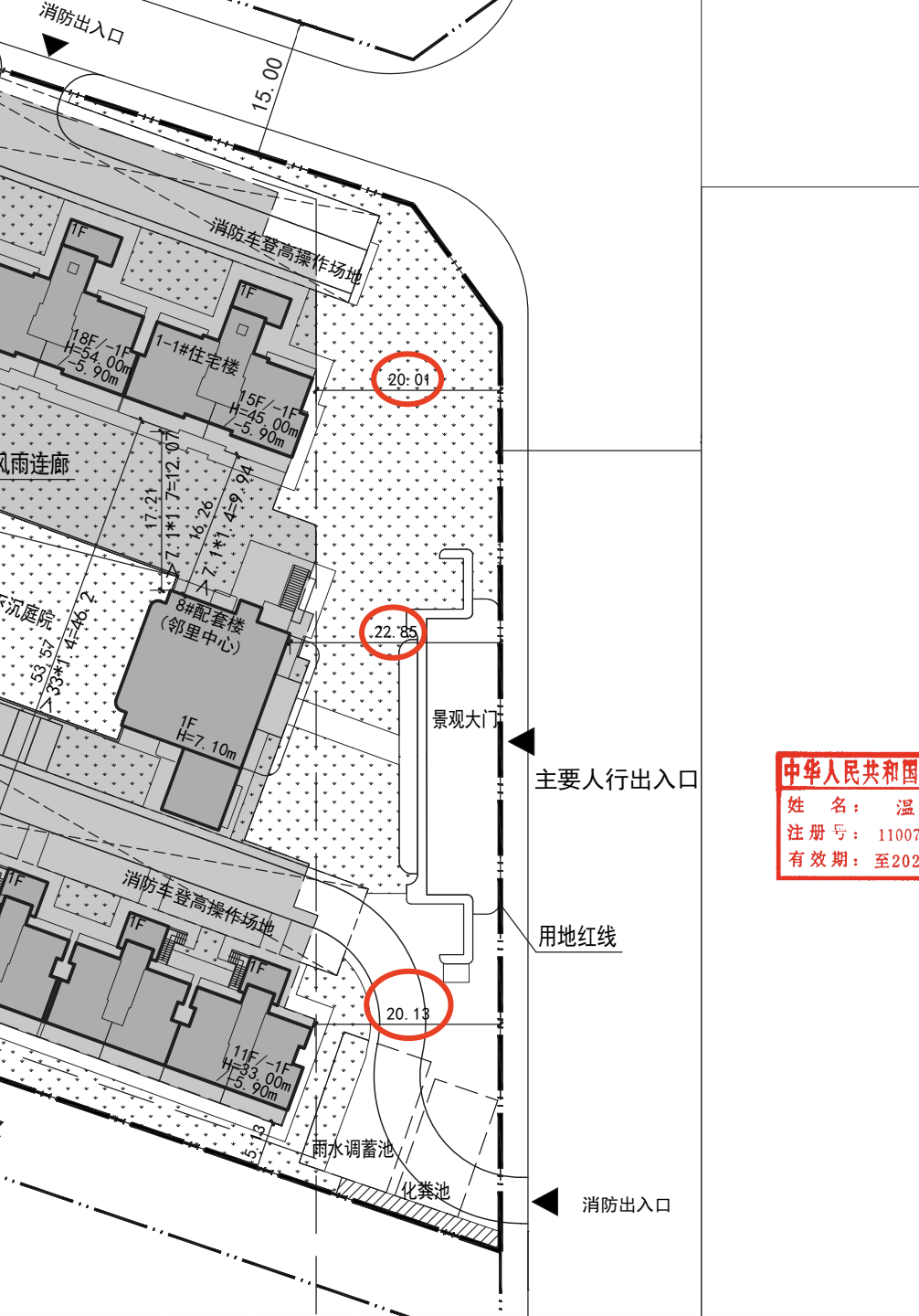 九棵树中路西侧,也就是小区东侧,只有大门沿红线而建,其余的住宅楼和配套楼都退线20米+。